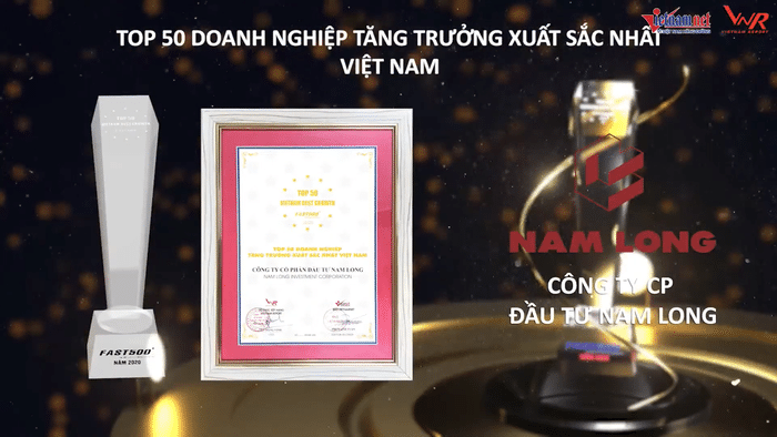 Trong khuôn khổ đánh giá công khai Vietnam Report phối hợp cùng Báo VietNamNet, Nam Long tiếp tục lập hattrick với sự xuất hiện trong các bảng xếp hạng: “Top 50 doanh nghiệp tăng trưởng xuất sắc nhất Việt Nam 2019” thuộc danh sách FAST500 – Top 500 Doanh nghiệp tăng trưởng nhanh nhất Việt Nam 2020, danh sách PROFIT500 – Top 500 doanh nghiệp lợi nhuận tốt nhất Việt Nam năm 2020 và Top 10 Chủ đầu tư bất động sản uy tín năm 2020
